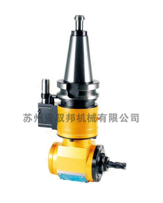 小型銑削動(dòng)力頭又叫小型角度頭,輕型角度頭——此類(lèi)角度頭特點(diǎn)為質(zhì)量輕(一般5-15kg,市場(chǎng)上甚至有3kg的超輕型)、精度高、扭矩偏小、可進(jìn)刀庫(kù)進(jìn)行自動(dòng)換刀。此類(lèi)角度頭用定位塊定位,輸出一般為筒夾或BT30錐柄,有時(shí)也有特殊的可以輸出CAT或HSK刀柄,也有部分特殊的直接連接絲攻或面銑刀。 它的特點(diǎn)是本體與角度頭可360度自由回轉(zhuǎn);內(nèi)藏式筒夾設(shè)計(jì),剛性強(qiáng);可用于ATC自動(dòng)換刀;高精度,干涉;校正簡(jiǎn)單,可用于攻螺紋、鉆孔和中輕度銑削。