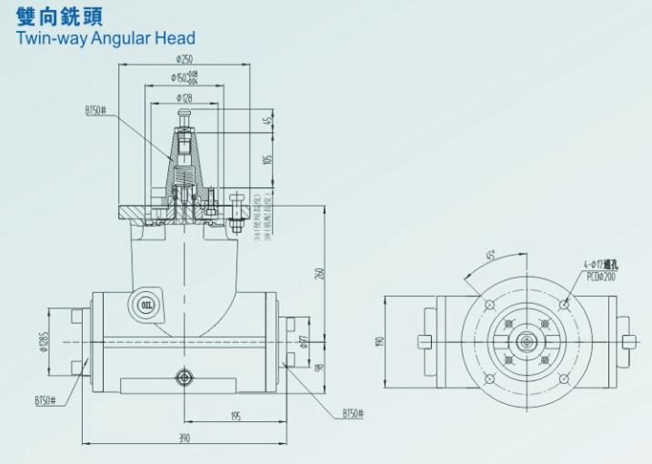 雙向銑頭雙向直角銑頭外形尺寸圖片
